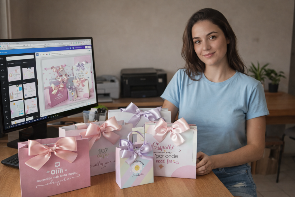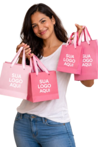 Sacolas personalizadas deixam sua loja mais profissional e aumentam o valor percebido dos seus produtos.